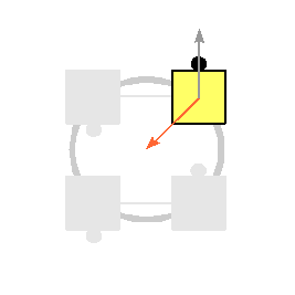 ![]() Because the center point is to the left, this dancer will be turning left and moving counter-clockwise. As the box counter rotates, from this dancer's perspective the center point is always behind and to the left.