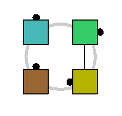 3.4: T-BONE BOXIn this example, some of the dancers in a box are facing head walls and some are facing side walls. This is called a "t-bone" formation.The same rules apply as for any other box. Since the principles of Counter Rotate really apply to each dancer individually, it doesn't matter that different people are facing different kinds of walls. They each just do the same action that they would do in an ordinary box.