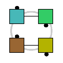 2) Everybody moves in a circular path around that center point. Another way of saying the same thing is that as they move, everybody stays the same distance from the center point. 3) Everybody moves around the center point the same portion of a circle (e.g., 1/4 of a circle). 4) Everybody turns the same fraction of a circle that they move (e.g., if they move 1/4 of the way around the circle, they also turn 1/4).