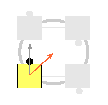 ![]() Because the center point is to the left, this dancer will be turning left and moving counter-clockwise. As the box counter rotates, from this dancer's perspective the center point is always behind and to the left.