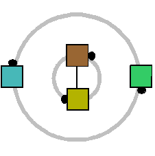 ![]() Note that the centers remain centers and the points remain points. This is different from a Diamond Circulate. In a Diamond Circulate, the centers become points and the points become centers. In a Diamond Circulate, the dancers are moving from spot to spot within a fixed formation. When Counter Rotate is applied to a diamond, the spots move along with the dancers, forming a new diamond oriented toward a different wall, with each dancer retaining his or her role (center or point).