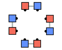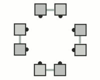 ![]() The eight dancers in a square are of two types, Boys and Girls -- four of each. They start out arranged as shown, with each couple consisting of a boy on the left, holding a girl by his right hand, and a girl on the right, holding a boy by her left hand.
