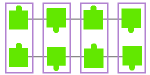 When one dancer is standing directly behind another, they are said to be "in tandem". Such situations arise in many different formations. For example, in parallel waves there are four tandems.
