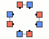 ![]() So "couples 1 and 3" is another way of saying "head couples", and "couples 2 and 4" is another way of saying "side couples". The two dancers in each couple are each other's partner. But when the dancers are arranged in this square formation, each dancer also has somebody on the other side, "around the corner" of the square. This person is called his/her corner. Each boy's corner is the girl to his left. Each girl's corner is the boy to her right.