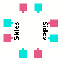 1.1: COUPLESWithin a squared set, the couples facing directly toward and away from the caller and music are called the Heads, and the dancers facing in the perpendicular direction are called the Sides. When referring to them as couples, the terms Head Couples and Side Couples are commonly used. In cases where the caller wants to refer to individual dancers, terms like Head Girls (the girls who are members of head couples) and Side Boys (the boys who are members of side couples) are also used.